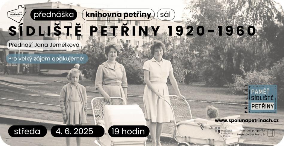 Otázky a vzpomínky v průběhu přednášky jsou tentokrát velmi vítány. Přednáška je součástí projektu Paměť sídliště Petřiny, jehož hlavním cílem je zachovat historii a paměť jednoho z nejstarších panelových sídlišť v Praze. To zahrnuje nejprve sběr a vyhledávání amatérského filmového a fotografického materiálu od pamětníků, kteří mohou poskytnout vzácné záznamy o sídlišti při jeho vzniku. V tuto chvíli hrozí ztráta těchto materiálů zejména z důvodu mezigenerační obměny.