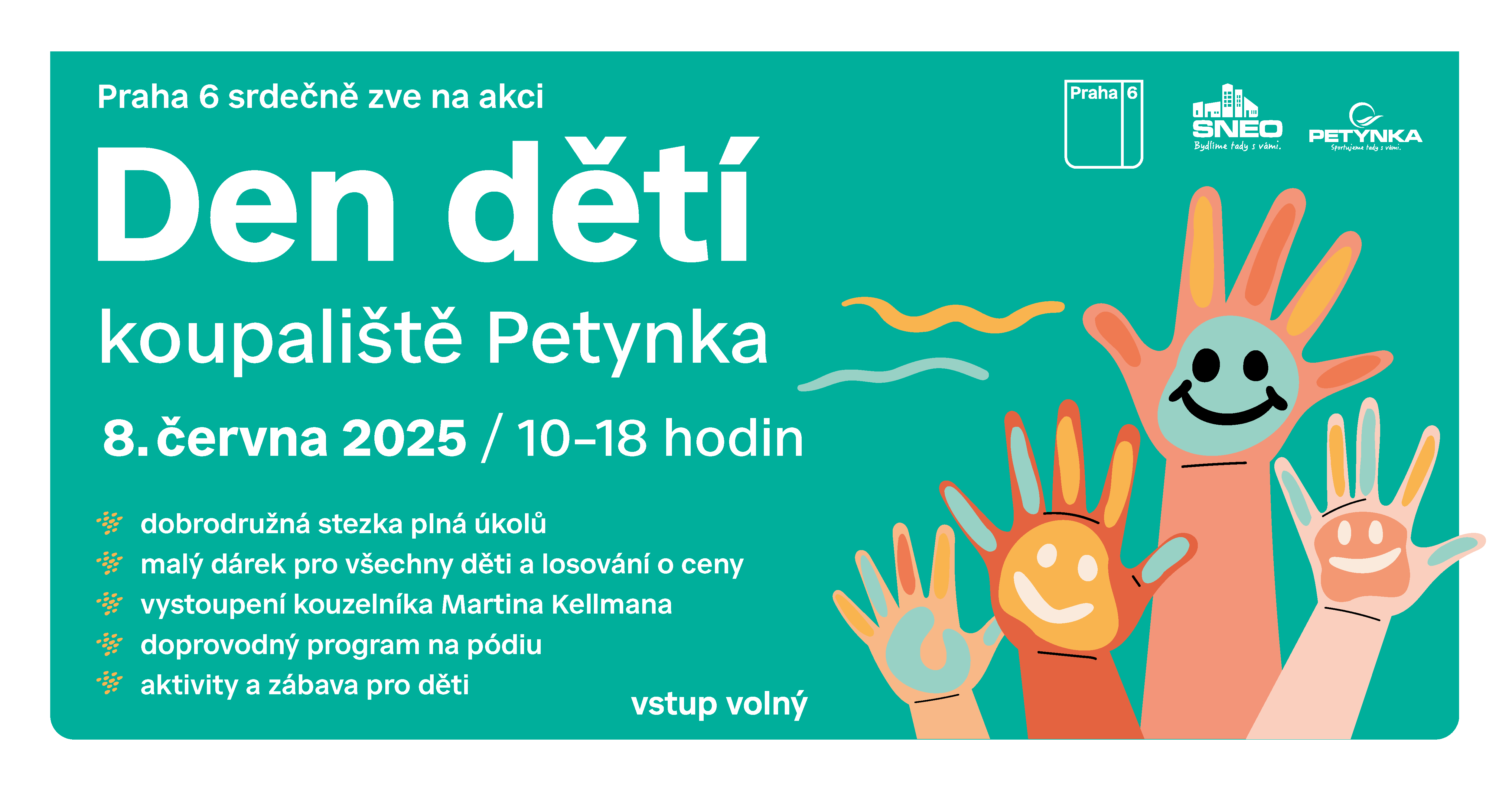 Městská část Praha 6 zve všechny děti i jejich rodiče na Den dětí, který se uskuteční v neděli 8. června od 10 do 18 hodin na koupališti Petynka. Vstup zdarma.