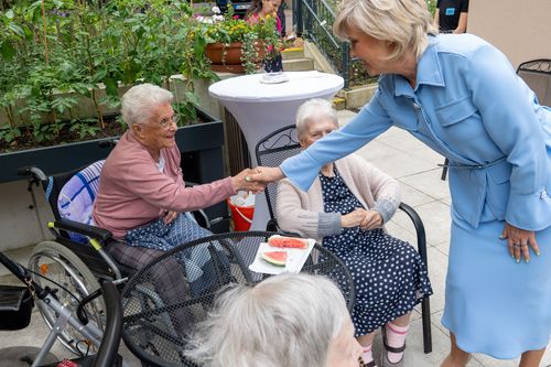 Ředitelka domova pro seniory Eva Kalhousová provedla první dámy zařízením, představila jim obětavý personál a některé z našich seniorů. Hosté měli jedinečnou příležitost setkat se s nejstarší obyvatelkou domova, která nedávno oslavila úctyhodné 98. narozeniny. Během prohlídky se první dámy seznámily s každodenním životem v domově, nahlédly do útulné klubovny, kde senioři tráví společné chvíle, a navštívily i moderní rehabilitační místnost, která pomáhá udržovat obyvatele domova v kondici. Průměrný věk klientů je 87 let, a že drtivou většinu tvoří ženy, muži pak tvoří přibližně 20 %.