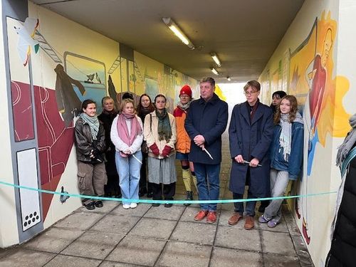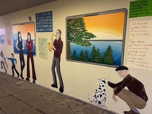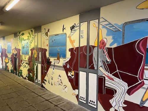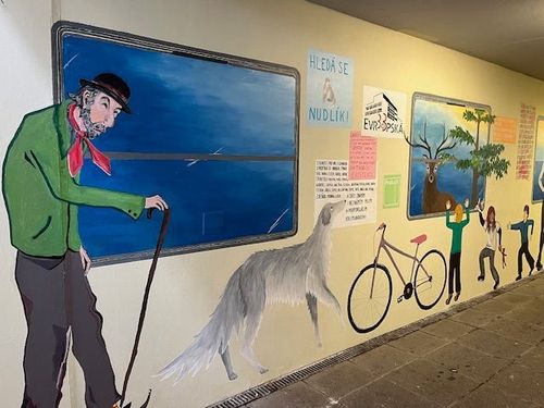 Během čtyř listopadových dnů vymalovali studenti druhého a třetího ročníku gymnázia Evropská 33 podchod v železniční stanici v Podbabě.