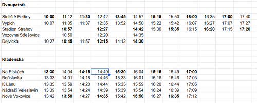 Petřiny > Dejvická (spoje ze Sídliště Petřiny v 10:00, 11:30 a 13:45)