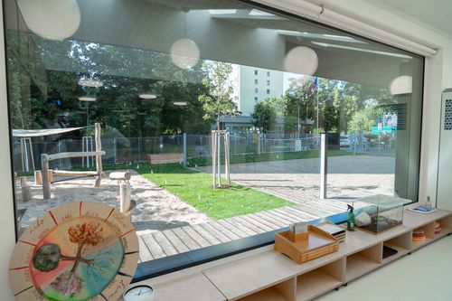 Spolu s výstavbou nové budovy prošla kompletní revitalizací i zahrada, kde přibyly nové herní prvky. Kolem areálu vyrostlo nové oplocení a došlo také k přeložce trafostanice, která uvolnila prostor pro další parkovací místa v okolí.