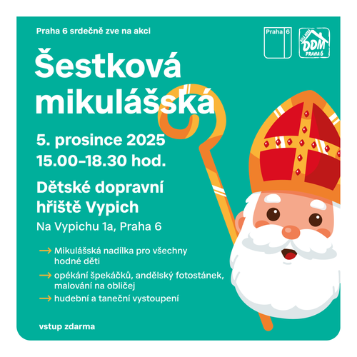 Mikulášské odpoledne pro děti a jejich rodiče patří mezi tradiční a oblíbené akce s obrovskou návštěvností. V areálu dopravního hřiště DDM na Vypichu na děti čeká mikulášská nadílka, setkání s čerty a anděly, hudební a taneční vystoupení a oblíbené opékání špekáčků. Akce se koná 5. prosince od 15 do 18.30 hodin. Více ZDE