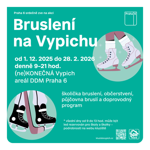 Součástí vánočních radovánek na šestce je možnost bruslení pod širým nebem. Na kluzišti na Vypichu v areálu dopravního hřiště DDM se bruslí každý den od 9 do 21 hodin. K dispozici je půjčovna bruslí i možnost občerstvení. Více ZDE