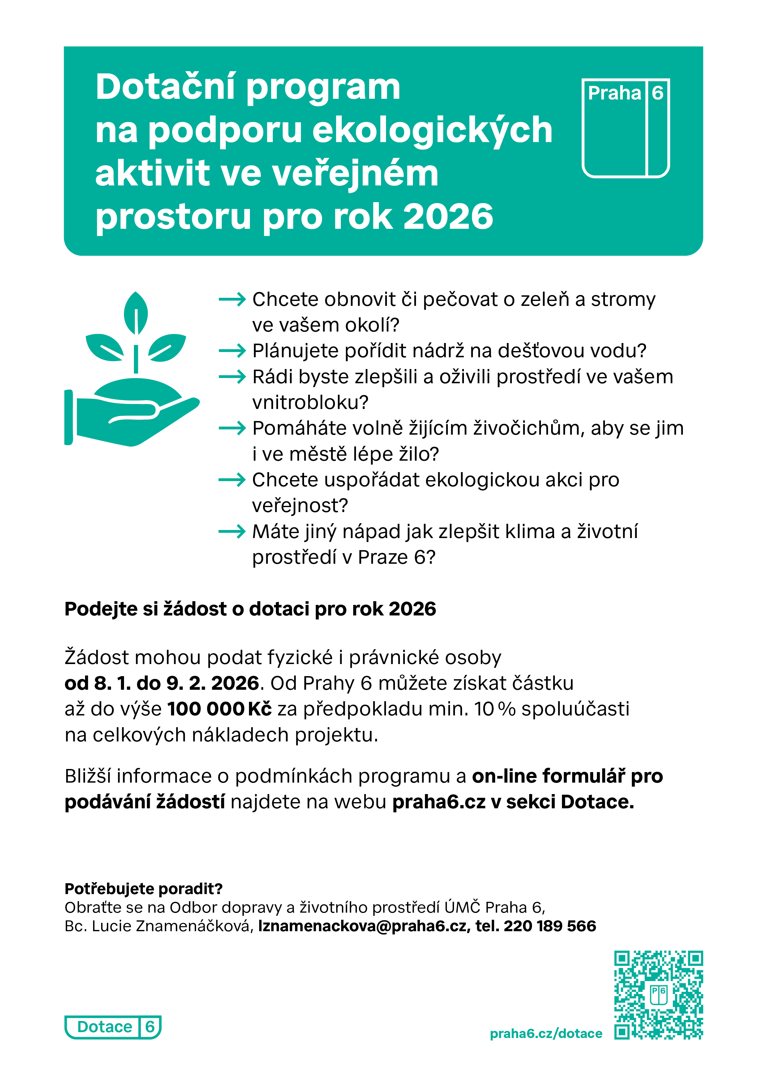 Do 9. února 2026 mohou žádat občané i právnické osoby Prahu 6 o dotaci v Programu na podporu ekologických aktivit ve veřejném prostoru v roce 2026.