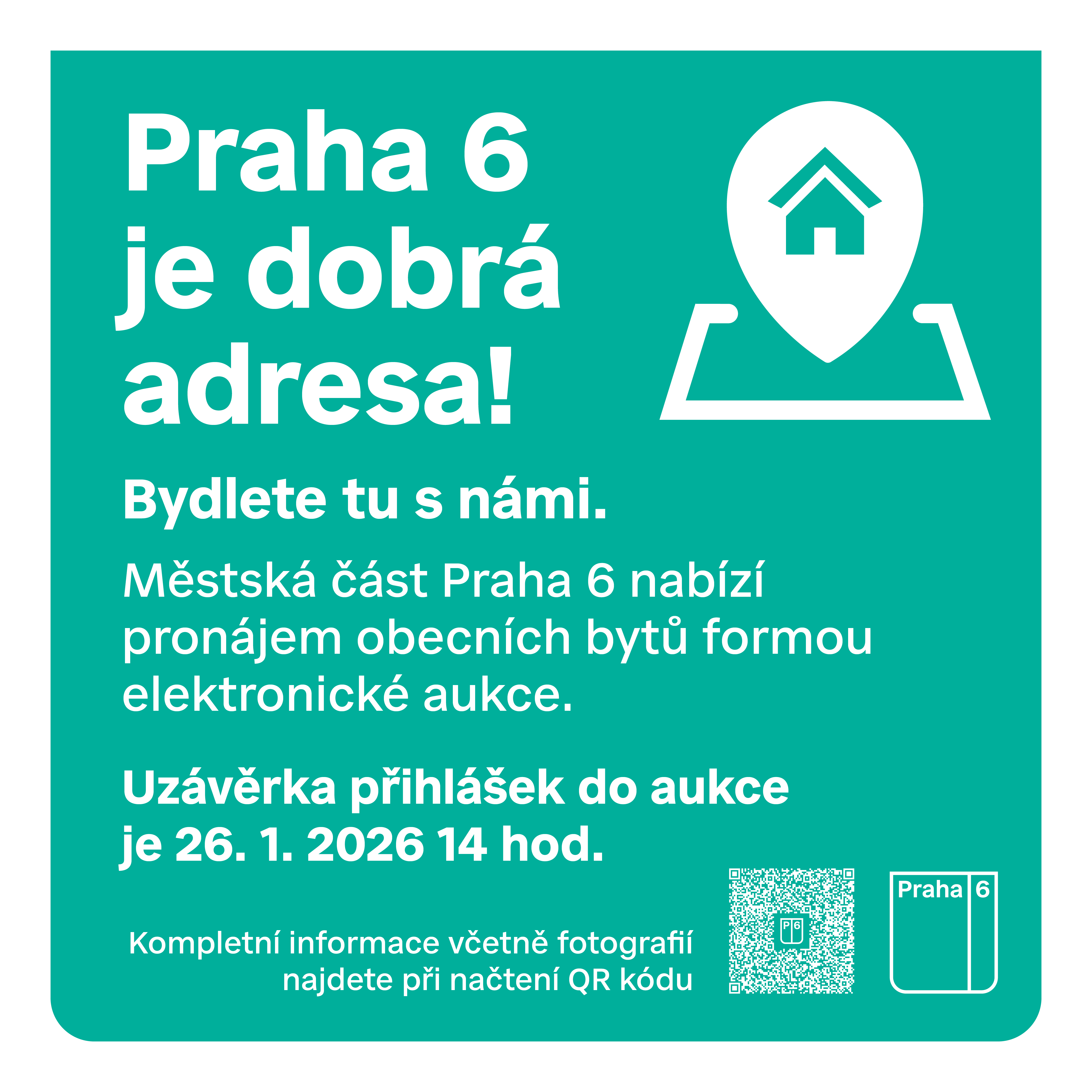 Praha 6 nabízí k pronájmu 13 obecních bytů formou elektronické aukce. Uzávěrka přihlášek je 26. ledna do 14 hodin. Samotná aukce pak začíná 2. února. Veškeré informace včetně virtuální prohlídky, fotografií i termínů prohlídek najdete na webu https://www.portalaukci.cz/mestska-cast-praha-6.html